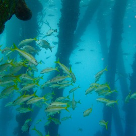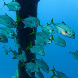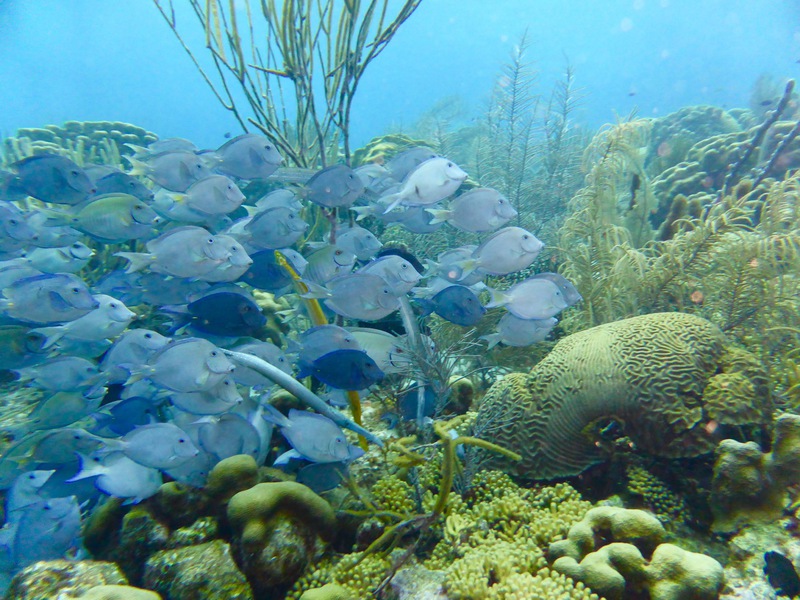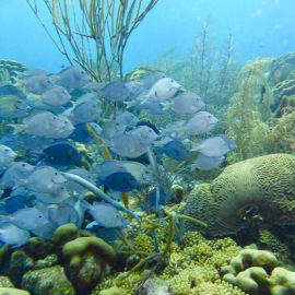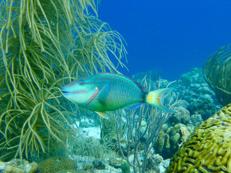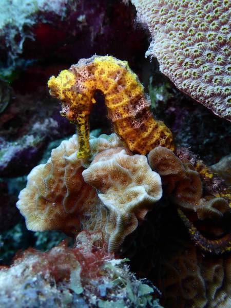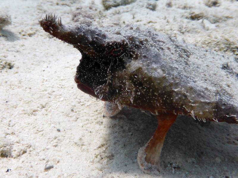 Man taucht individuell auf Bonaire, ohne strikten Zeitplan und ohne Guide - obwohl es natürlich auch möglich ist, sich durch einen solchen begleiten zu lassen. Es gibt ein paar große "Tauchfabriken" auf der Insel, den wirklichen Charme machen aber die kleinen Tauchbasen aus, von denen es dutzende gibt. Meist suche ich mir am Morgen lediglich aus, ob ich nach Norden oder nach Süden fahre und bleibe dann bei jenen Tauchplätzen stehen, die mich spontan ansprechen. Der berühmte Ausspruch des mittlerweile verstorbenen Captain Don, dem Initiator des Bonaire Marine Park und dem Begründer des Tauchtourismus auf Bonaire, "Bonaire's fortune lies under water", trifft auch heute noch zu. Ein Pelikan stößt neben mir ins Wasser, während ich mir, im hüfthohen türkis spiegelnden und leuchtenden Nass, die Maske aufsetze. Perlenkofferfische begleiten mich das erste Stück des Weges, ich liebe diese kleinen Kreaturen mit ihrer ulkigen Tracht. Kalmare variieren ihre Farbe und bewegen sich vor und rückwärts, Weichkorallen wiegen sich in der leichten Strömung während die ersten pinken Schwämme meinen Abstieg mit Farbenpracht begleiten. Eine Schildkröte paddelt nach oben. Nach dem ersten Riff und einer Sandfläche mit einer Unzahl an Röhrenaalen folgt das zweite Riff. Der gesamte Süden Bonaires verfügt über ein solches Doppelriff, wobei die meisten bis zum zweiten nicht gelangen. Ein Tarpun reflektiert das Sonnenlicht. Ich versuche das Seepferdchen wiederzufinden, erweise mich aber als halbwegs orientierungslos und kann den Sichtungsort nicht mehr auffinden. Mir scheinen erst wenige Minuten vergangen zu sein, doch schon zwingt mich das Finimeter wieder nach oben. Morgen werde ich einen hässlichen, aber außergewöhnlichen kleinen Unterwasserbewohner von Bonaire aufsuchen, der im seichteren Wasser direkt vor der Hafenpromenade residiert. Einen Kurznasenfledermausfisch. Denken Sie nun nicht an die eleganten, diskusförmigen, grauen Fische aus dem Indopazifik oder dem Roten Meer. Der Kurznasenfledermausfisch ist ein ganz anderes Kerlchen, ein "Armflosser", der auf seinen "Händen" geht und überhaupt sehr abstrus anzusehen ist ("sieht aus wie ein Chicken Wing", hatte ein befreundeter Tauchguide konstatiert). Der Reichtum an unterseeischen Bewohnern ist unendlich in Bonaire (und manchmal findet man unter Wasser auch ein "Chicken Wing").