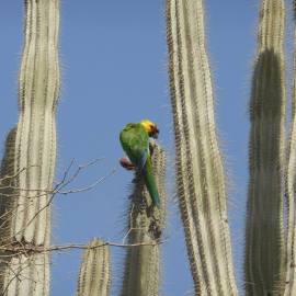 Landung am Flamingo Airport. Das pinke Flughafengebäude signalisiert einem sofort, dass man tatsächlich in der Karibik gelandet ist. Ebenso der warme Wind, der einem beim Aussteigen um die Ohren weht. Eine unkomplizierte Passkontrolle wie in alten Zeiten. Die Zeit tropft langsam dahin auf Bonaire. Bunte Häuser, kakteenbestandene Hügel, leuchtend türkises Meer, Papageien, rosa und hellgrüne Salzpfannen, weiße Salzberge, Flamingos und ein unglaubliches Korallenriff, das die ganze Insel umgibt.