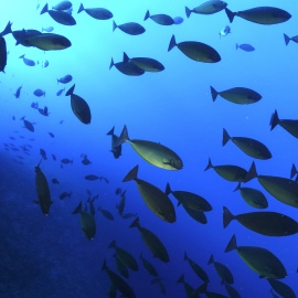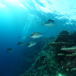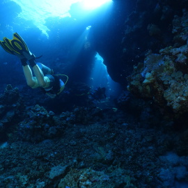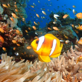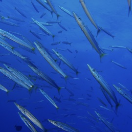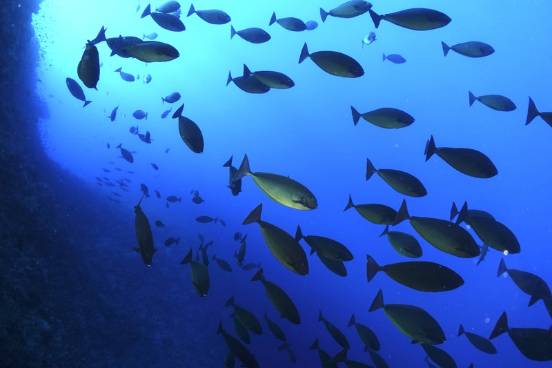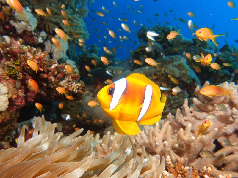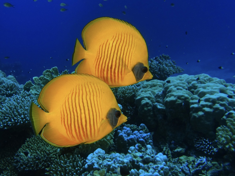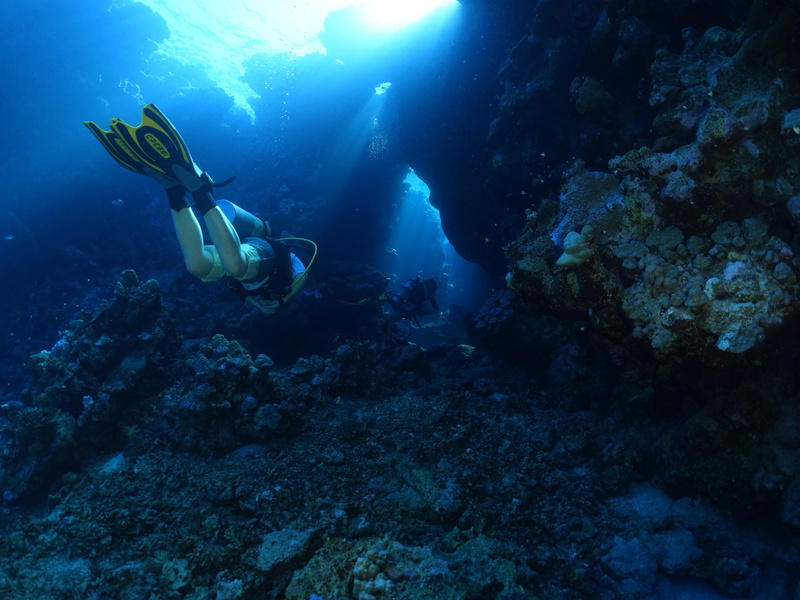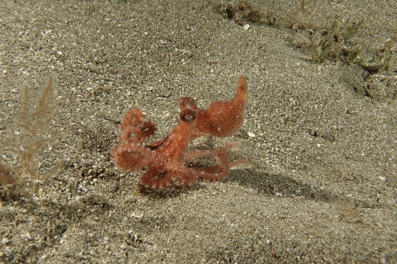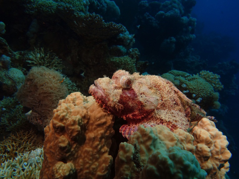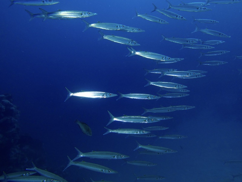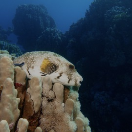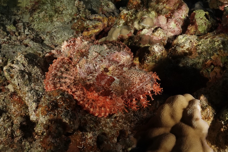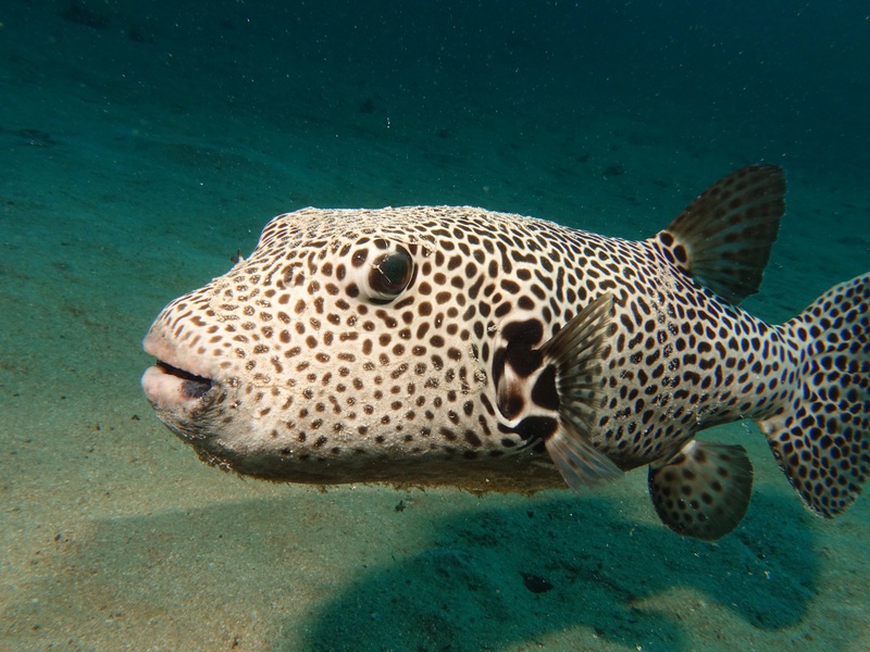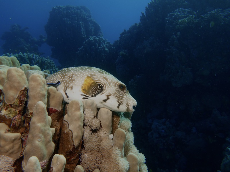 Auch in anderen, flachen Buchten, die wir entweder vom Boot oder vom Land aus betauchen, flattern Rochen umher, dösen Schildkröten, umkreisen uns Sardinen- und Barrakudaschwärme, während Kugelfische, Kofferfische und Igelfische uns argwöhnisch mit ihren runden Äuglein betrachten.
