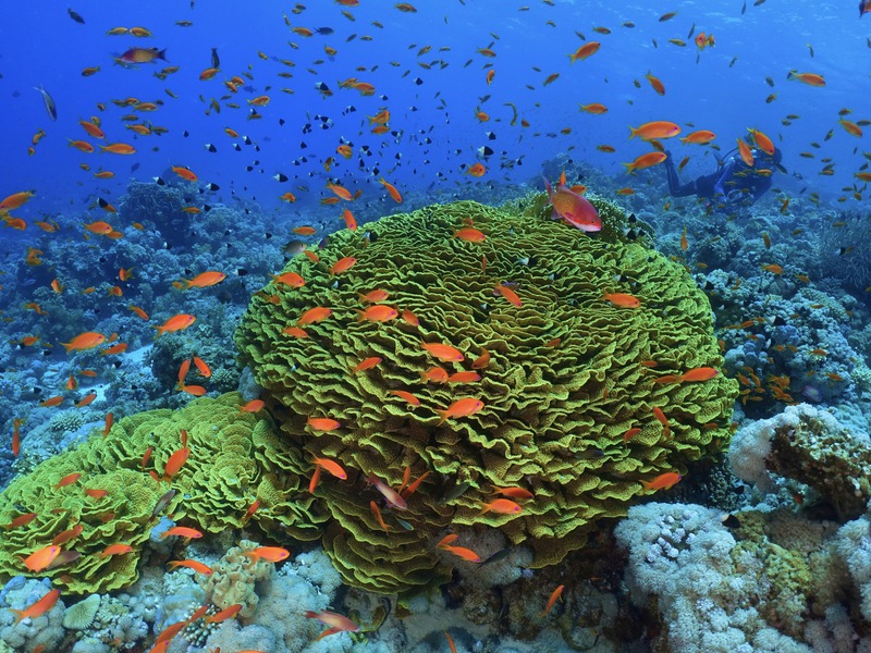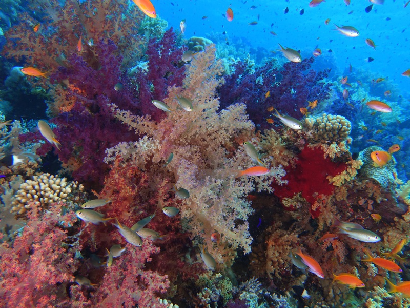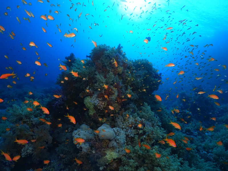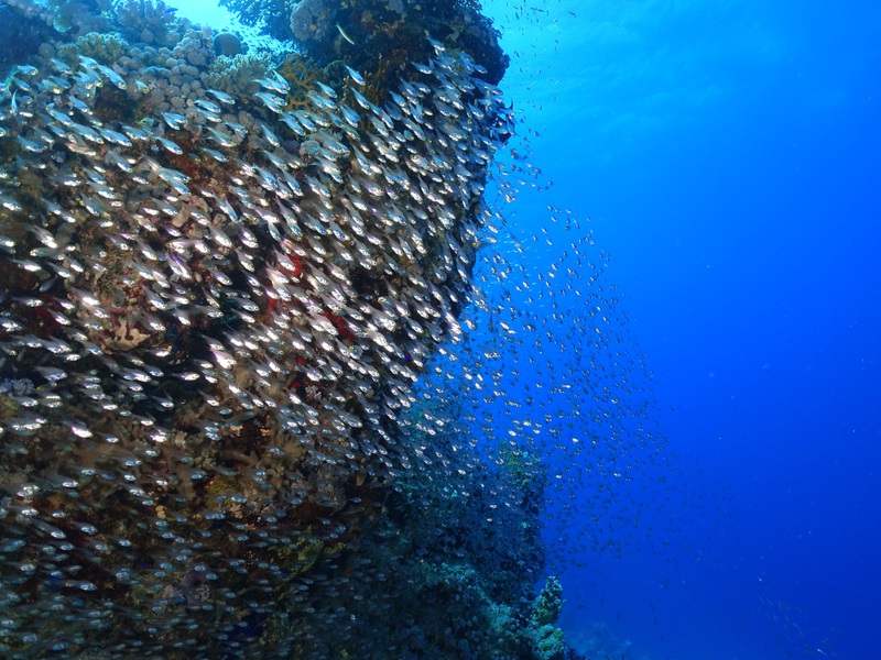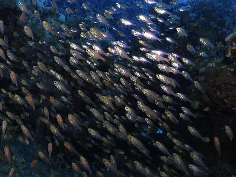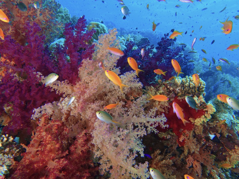 Nun muss man natürlich auch die Tiran Riffe betauchen, wenn man denn schon in Sharm El Sheikh ist. Gordon und Thomas Reef präsentieren farbenprächtiges Getier und herrliche Anthias Schwärme. Am Ende des Thomas Reef setzt etwas Strömung ein und saugt uns die pulsierenden Riffwände entlang, als wolle es sicherstellen, dass wir auch wirklich alles zu sehen bekommen. Fein verästelte Feuerkorallen fächern sich entlang der Riffkante auf. Eine Schildkröte kaut vergnügt am Weichkorallenbewuchs. Eine Muräne faucht aus einer Spalte hervor. Kugelfische und Igelfische schwimmen eilig vorüber. Fast jeder Tauchgang ist ein Höhepunkt, sodass man sich am Ende fast geplättet fühlt von so viel Überfluss.